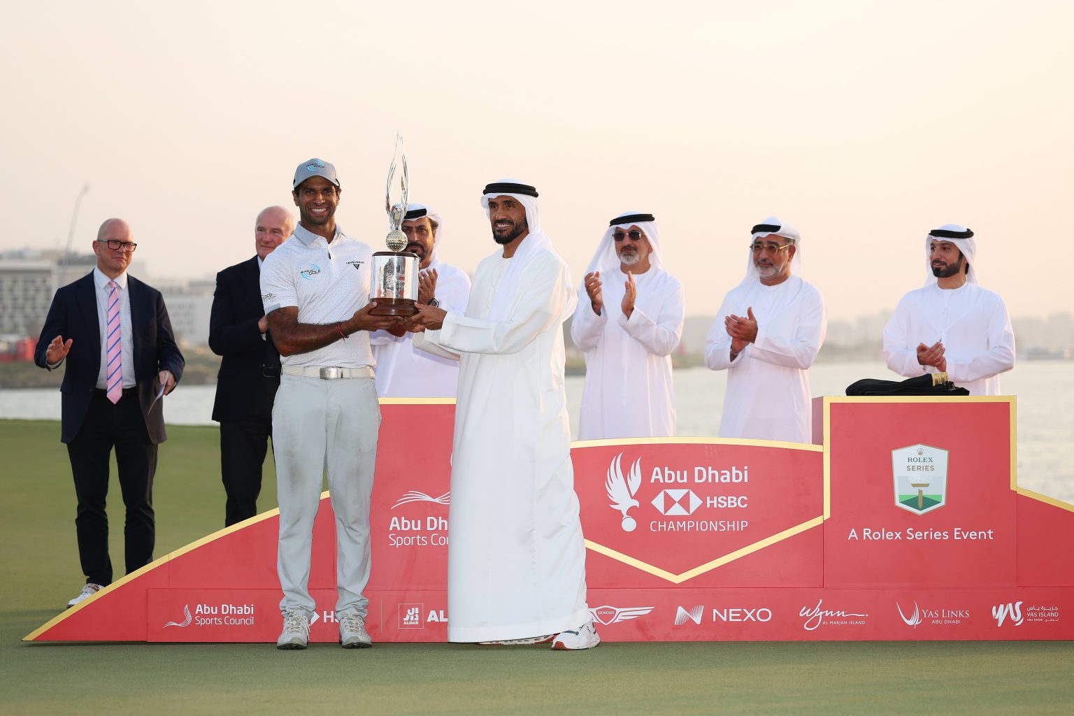 The trophy presentation was led by His Highness Sheikh Nahyan Bin Zayed Al Nahyan, Chairman of the Abu Dhabi Sports Council, accompanied by senior representatives from the Emirates Golf Federation, HSBC, DP World Tour and Mohamed Rasool Khoory & Sons.