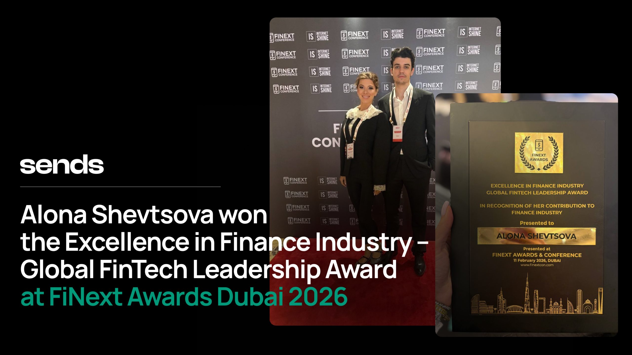 Alona Shevtsova, founder and CEO at Sends, has been rewarded with the Excellence in Finance Industry – Global FinTech Leadership Award at FiNext Awards Dubai 2026.