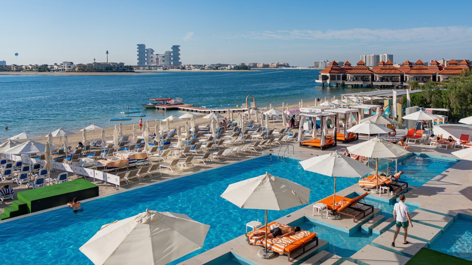As the sun rises higher, children can head straight to the private beach to build sandcastles, splash in the sea, or enjoy the hotel’s sparkling pool with stunning views of The Palm.
