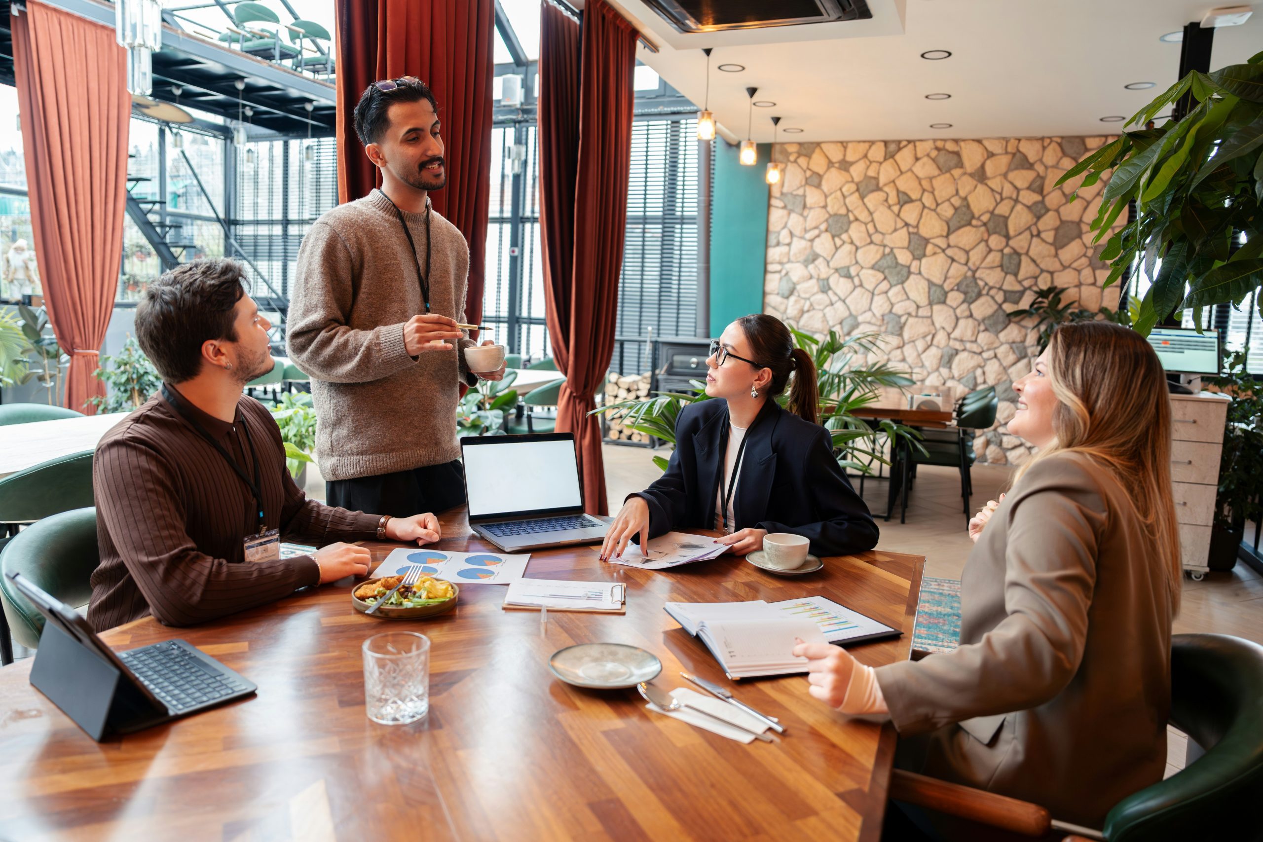 Five minutes before the start — one of the most compelling moments. Everything freezes. Zhanna and her assistants move through the room: one checks the sound in the far corner, another gives a signal to the bar. Everything is ready — this is the final touch, like a plane before takeoff. I watch Zhanna take her place by the entrance, as she observes the first guests, then straightens her shoulders — and then… disappears. Quite literally, she slips out of sight. Now she’s backstage, in a headset, in background mode, directing without intruding, intervening only when necessary.